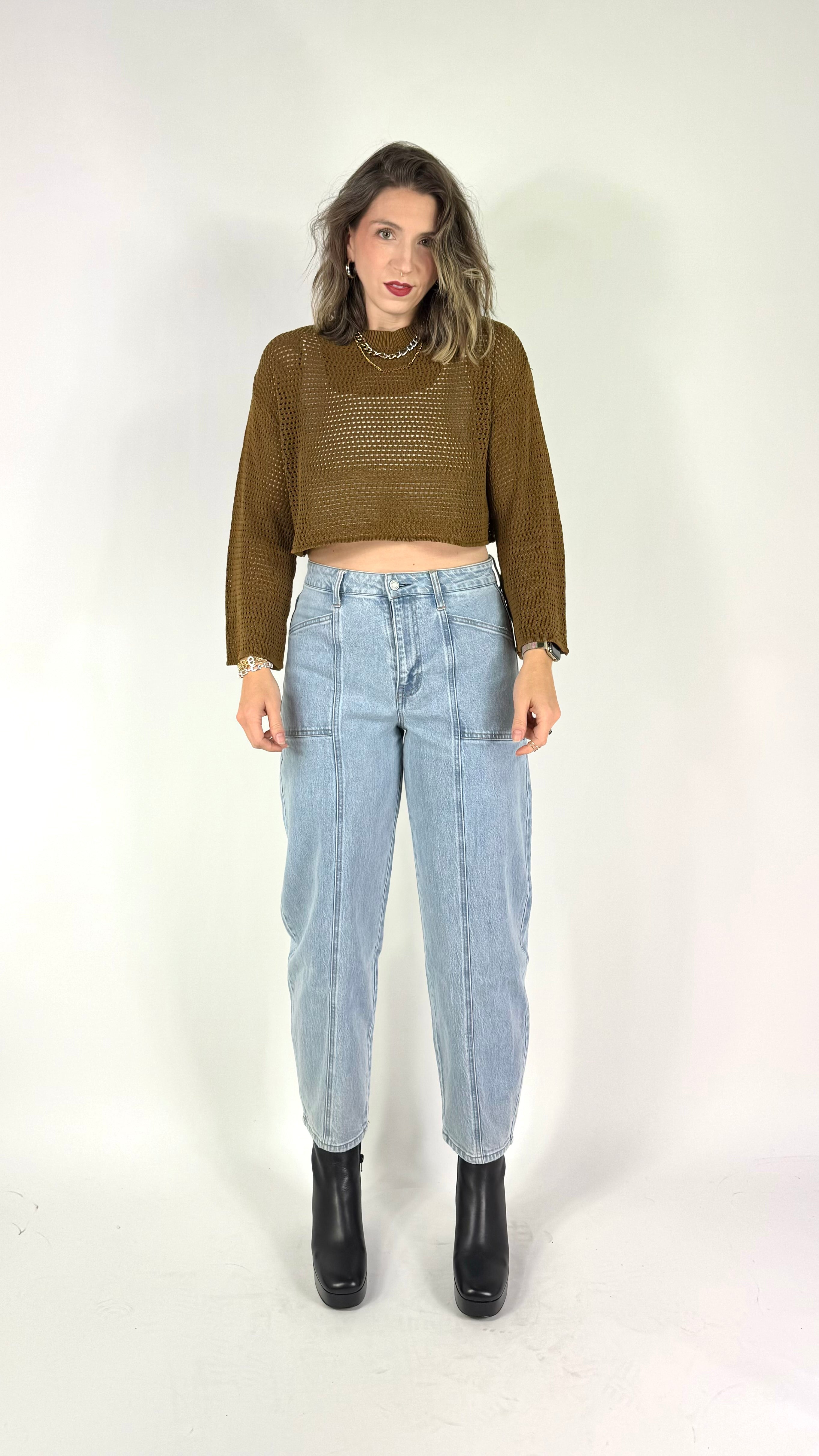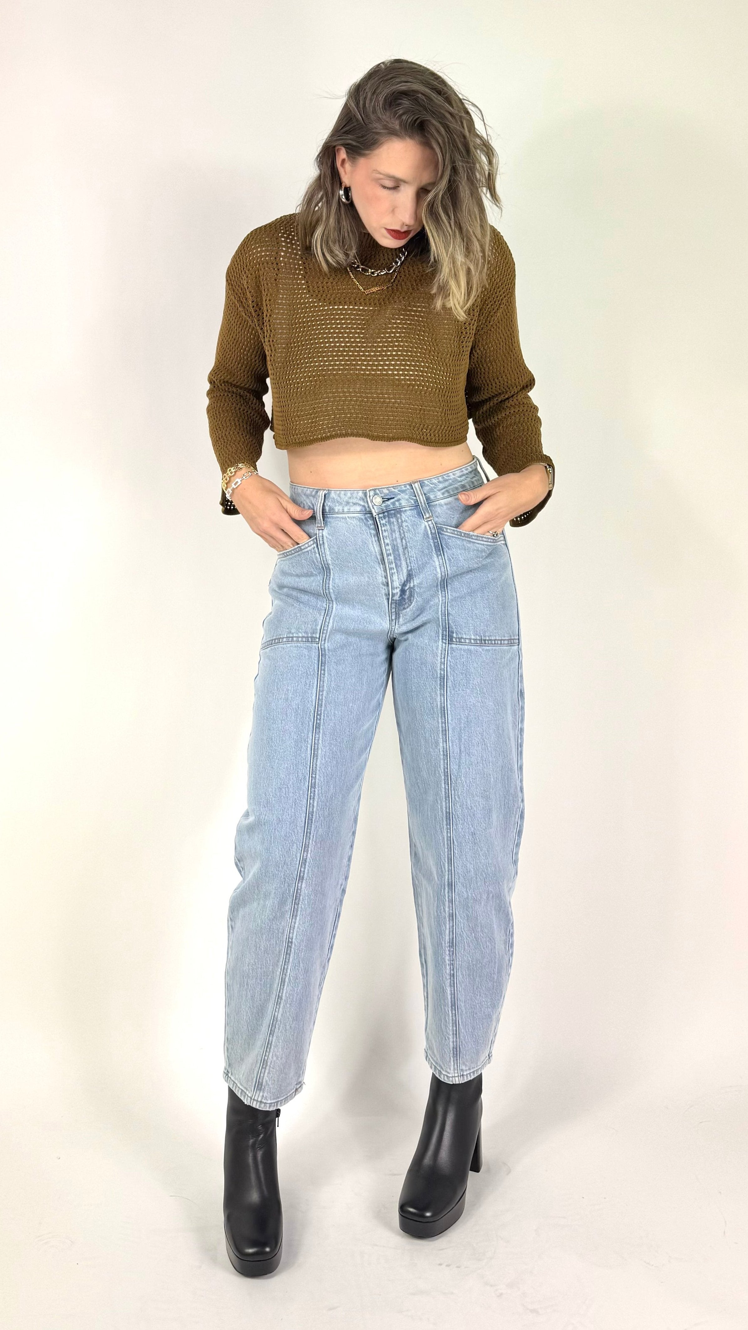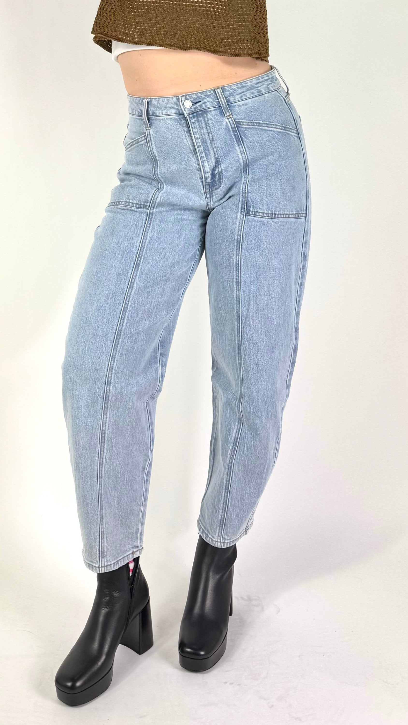 Our High Rise Light Wash Jeans combine style and structure to bring out the best in your silhouette. With an ultra-high rise and contemporary barrel-leg shape, these jeans deliver a flattering fit that accentuates your curves and lengthens your legs. Designed to seamlessly pair with anything from fitted tees to oversized sweaters, they’re the perfect blend of comfort and elegance. Step up your denim game with a look that’s both effortless and refined.