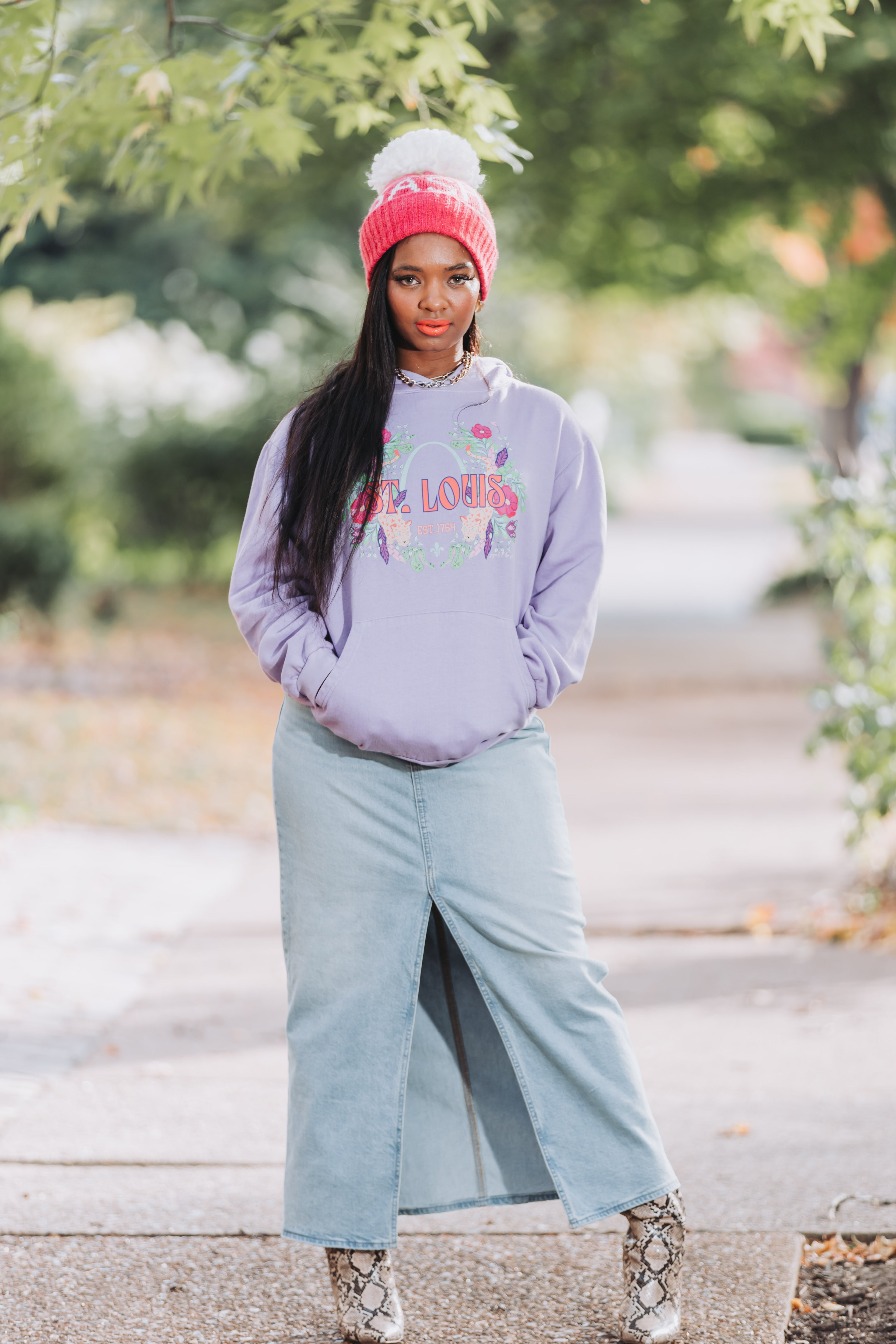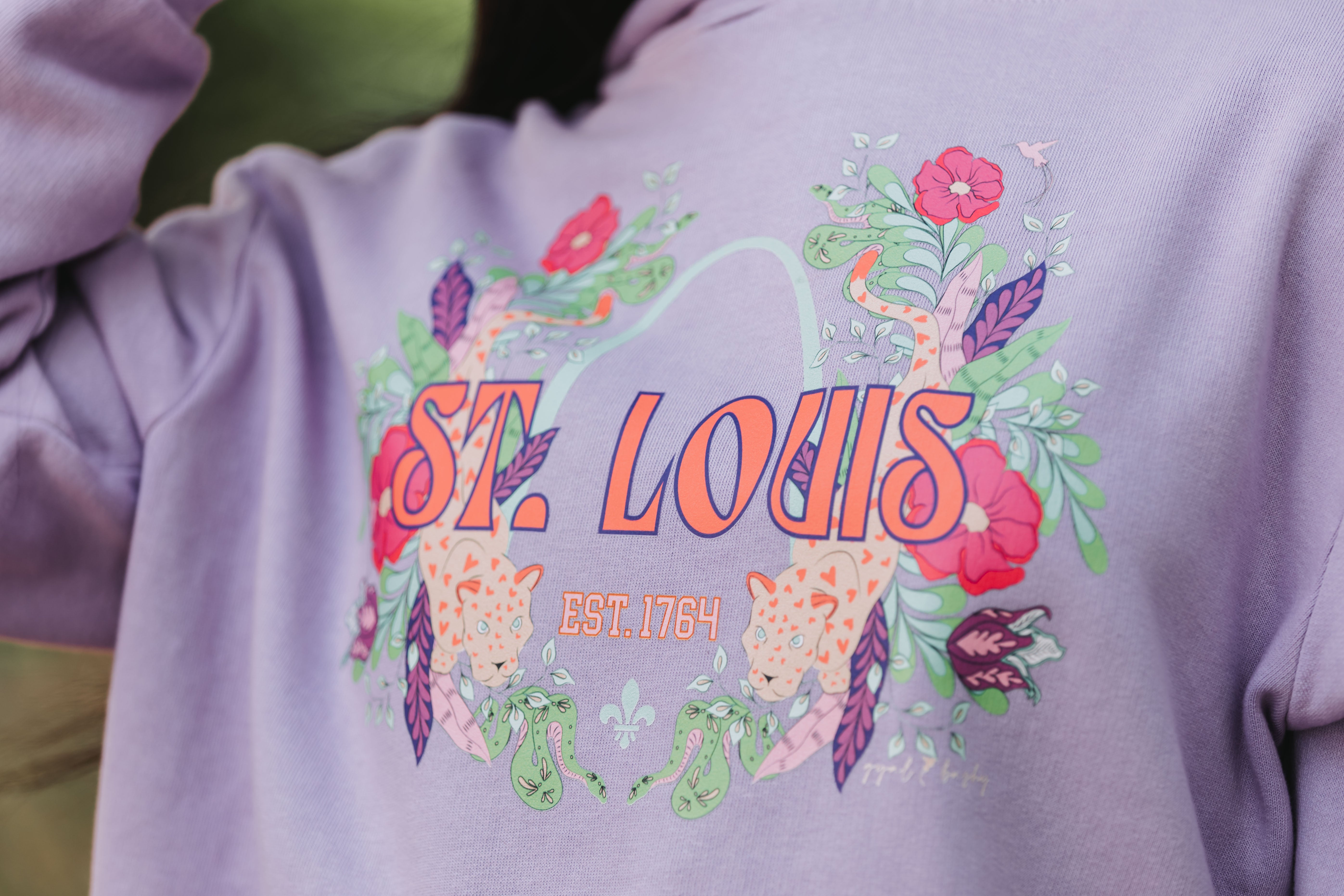 Show your St. Louis pride with a touch of wild flair in this stunning graphic hoodie. The design features the iconic St. Louis Arch surrounded by lush florals and striking leopard accents, creating a fresh, stylish look. Available in a range of colors, this hoodie is as versatile as it is eye-catching. Its soft, comfortable fit makes it perfect for any occasion, whether you’re dressing up or keeping it casual.