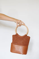 This genuine leather bag features a natural leather and hand braided crochet-like textile exterior with hand polished wooden handles! This gorgeous everyday handbag is lined with our custom printed organic cotton woven fabric! The best thing about this bag, it's just the right combination of neutral and unique! Perfect for carrying your sunglasses, hand sanitizer, wallet, phone, lipstick and more, it's not too big, but there's plenty of room for everyday essentials!