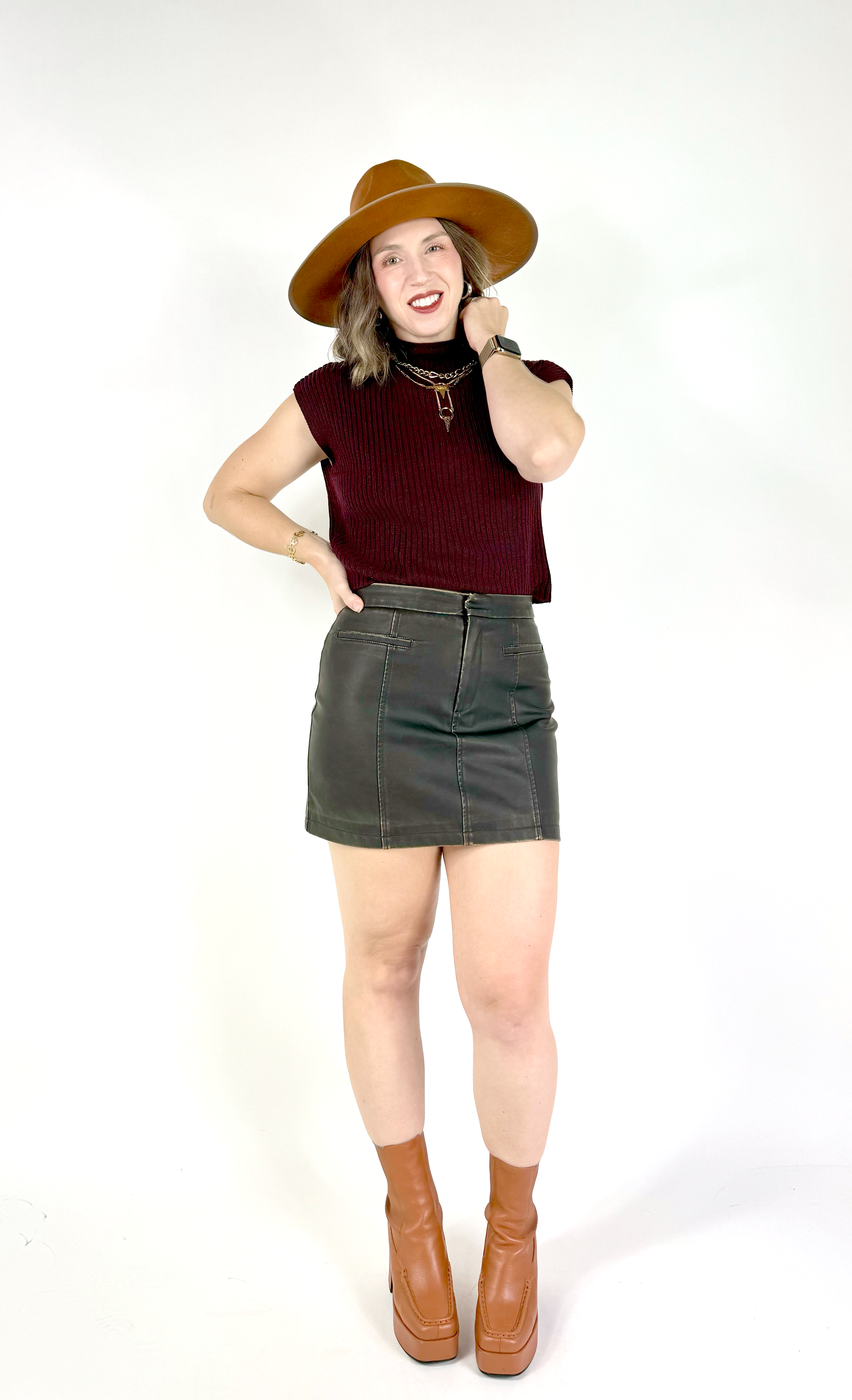 Embrace sleek sophistication with the Distressed Faux Leather Mini Skirt! This fitted mini hugs your curves in all the right places, offering a blend of elegance and edge that’s perfect for any occasion. The smooth faux leather finish gives you that luxe look without sacrificing comfort. Pair it with a tucked-in blouse for a chic evening out or dress it down with your favorite graphic tee for a day-to-night vibe. Wherever you go, the Distressed Faux Leather Mini Skirt keeps you looking effortlessly stylish!